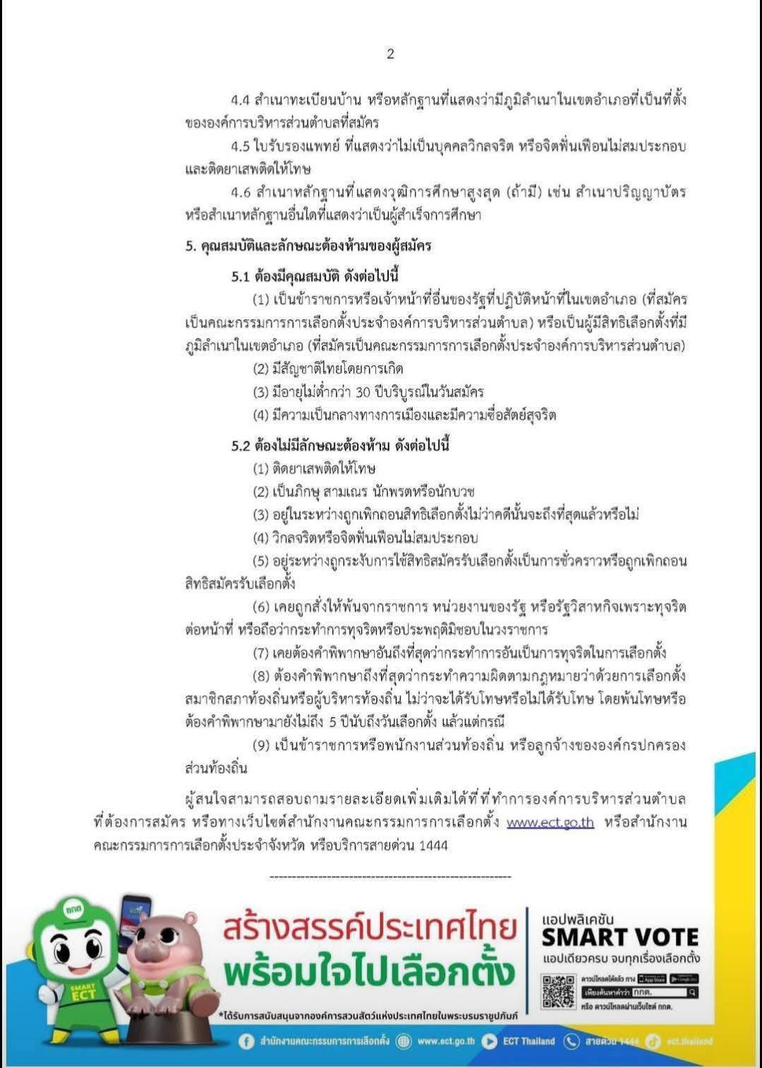การสมัครเข้ารับการสรรหาเป็นคณะกรรมการการเลือกตั้งประจำองค์การบริหารส่วนตำบล ระหว่างวันที่ 6-10 ตุลาคม 2568